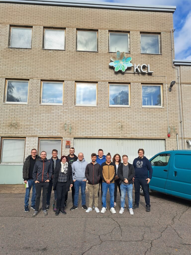 Den Abschluss der Studienreise bildete am Freitag der Besuch bei KCL, einer Forschungseinrichtung, die sich auf die Verwendung von biobasierten Fasern spezialisiert hat. Die Einrichtung besteht aus drei Bereichen: Faseranalyse, Streichtechnik und der Laboranalytik. Im Rahmen eines umfassenden Fachgespräches wurden den Absolventen die Ergebnisse von Experimenten in Kooperation mit führenden Partnerunternehmen gezeigt. Zudem wurde ein Vortrag mit dem Thema „Mikrobiologie im Prozesswasser und deren Bedeutung für die nachhaltige, flexible Nutzung von Bio-Fasern und Beschichtungen in der Lebensmittelindustrie“ dargestellt. Anschließend fand eine umfangreiche Werksführung statt, die wiederrum eine praxisnahe Forschung zwischen Partnerunternehmen und der zukunftsorientierten Forschung mit eigens entwickelten Prototypen Pilotmaschinen eindrucksvoll unterstrich.